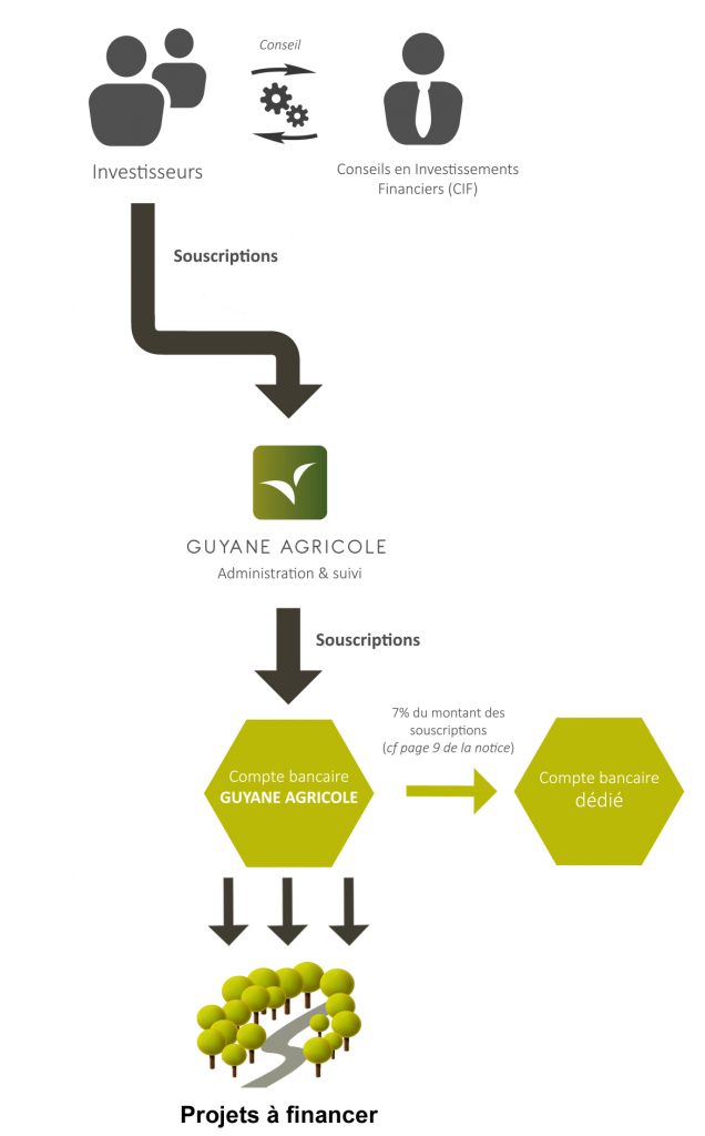 L’investisseur fait son apport sur le compte GUYANE AGRICOLE, qui confirme à l’investisseur par courrier ou email la bonne réception des fonds,